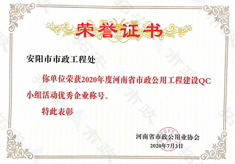 (省級)榮獲河南省市政公用工程建設QC小組活動優 秀企業稱號
