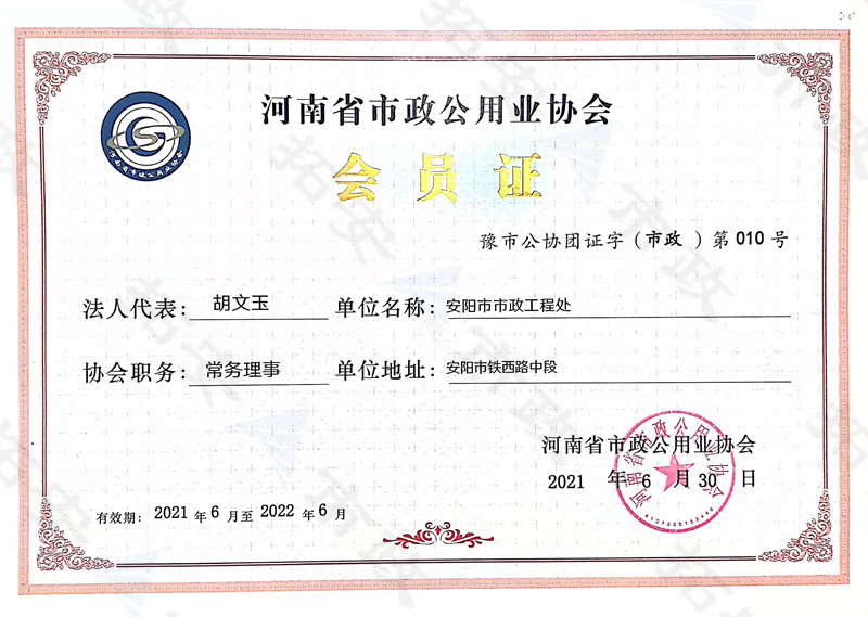 (省級)河南省市政公用業協會常務理事會員證